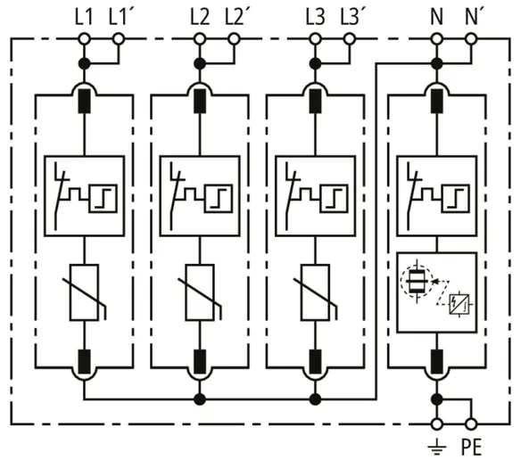| Max. discharge current (8/20 µs) [N-PE] (Imax ) | 120 kA |