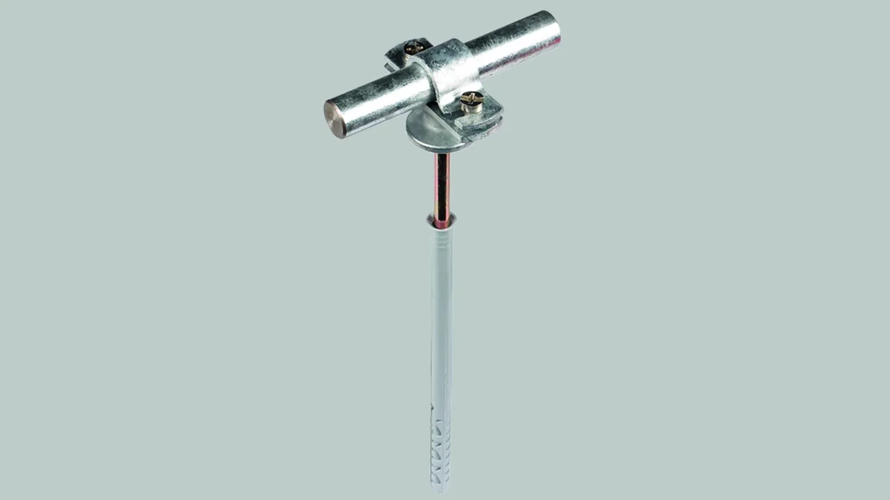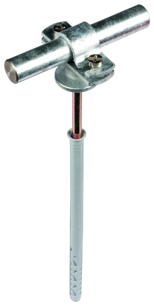 Two-screw cleat with screws M6, with flange (ZDC) and plastic dowel Ø10 mm.