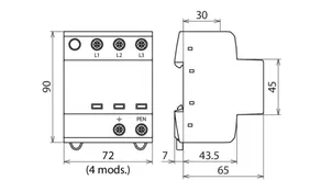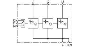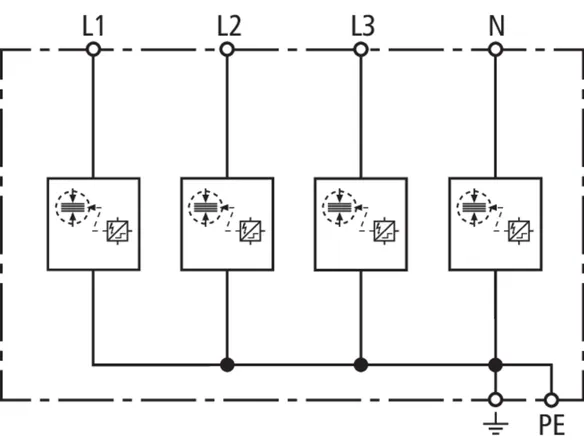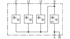 | Lightning impulse current (10/350 µs) [L1+L2+L3-PEN] (Itotal ) | 22.5 kA |