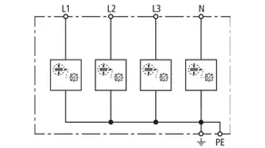 | Lightning impulse current (10/350 µs) [L1+L2+L3+N-PE] (Itotal ) | 30 kA |