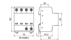 | Lightning impulse current (10/350 µs) [L-N]/[N-PE] (Iimp ) | 7.5 / 30 kA |