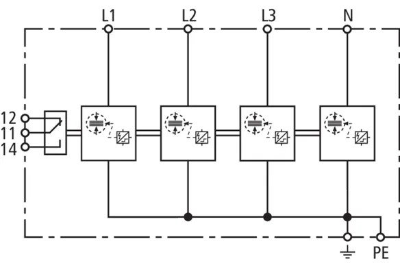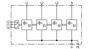 | Lightning impulse current (10/350 µs) [L1+L2+L3-PEN] (Itotal ) | 37.5 kA |