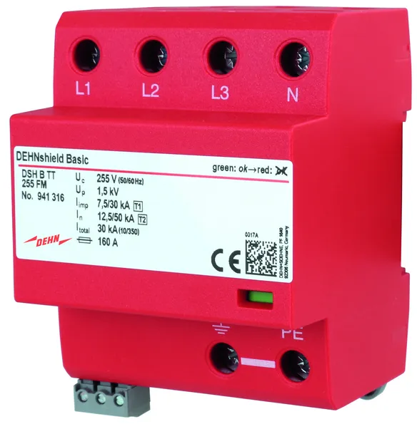 - Fulfils the minimum requirements on the lightning current discharge capacity according to IEC 60364-5-53