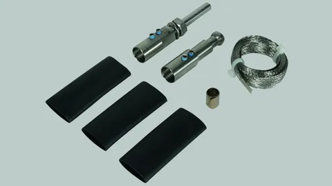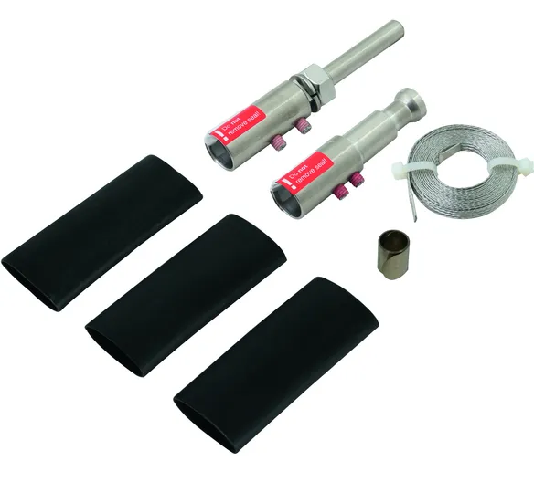 Connection kit for sealing both ends of the HVI-light Conductor, for establishing the adjustment range of the conductor in the supporting tube (head piece) and connection element for connection to other parts of the external lightning protection or earth-termination system (including EB connecting cable, constant force spring and three heat shrinkable sleeves)
