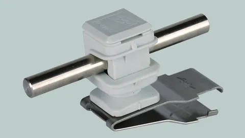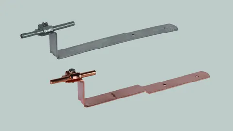 Dachleitungshalter für Firstziegel, Gratsteine und Dachflächen auf einem Satteldach.