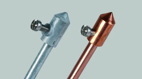 Fangstangen, Fangspitzen, Tele-Blitzschutzmasten und Zubehör zum Schutz von erhöhten Dachaufbauten oder Bauwerken.
