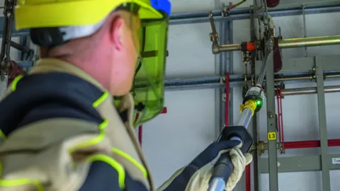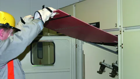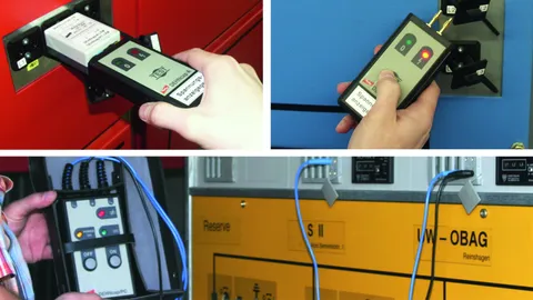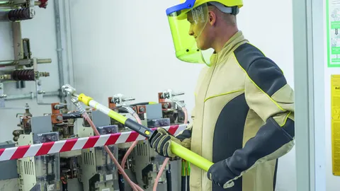 Safety devices such as operating sticks, lock-out systems, voltage detectors, earthing and short-circuiting devices and insulating protective shutters for working according to the five safety rules.
