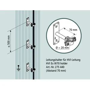 Für die Verlegung der HVI Leitung mit Leitungshaltern HVI Ex W70 holder (Art.-Nr. 275 440) auf einer nichtleitenden Struktur z. B. Stein, Holz.