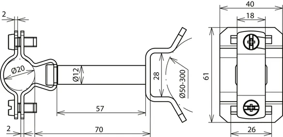 70 mm zur Befestigung an Rohren z.B. mit Bandrohrschelle