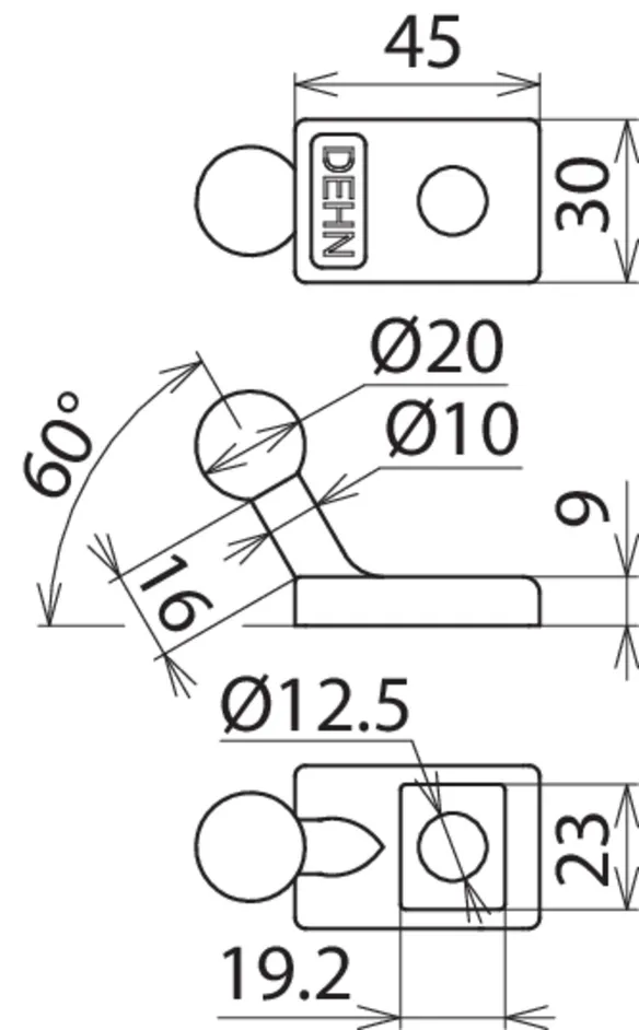 Kugelfestpunkt in abgewinkelter Ausführung.