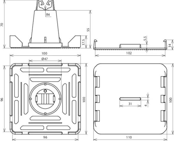 | Kunststoffoberteil separat Typ KF Art.-Nr. 253 016 auf Anfrage. | |