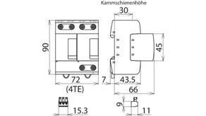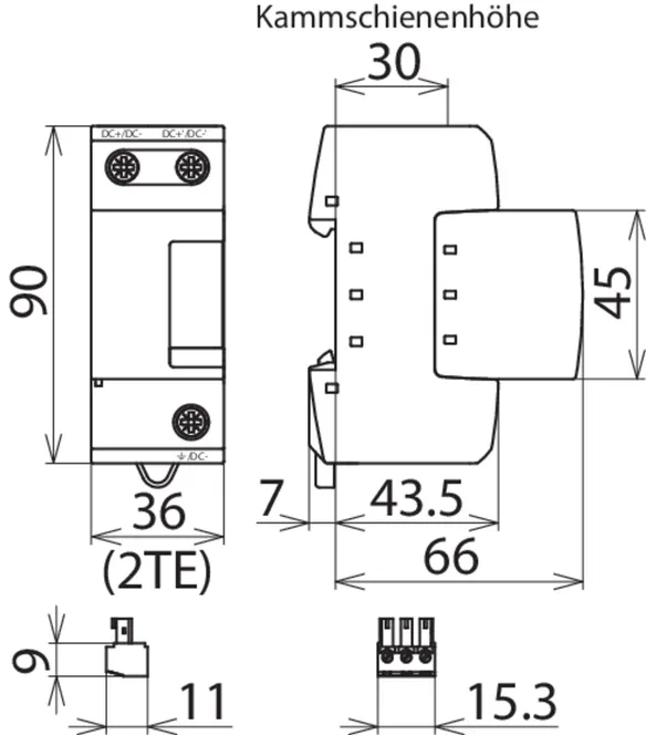 Schutzpegel (DC+/DC- -> DC-/DC+) / (DC-/DC+ -> 9) (UP ) ≤ 1,5 / ≤ 1,5 kV