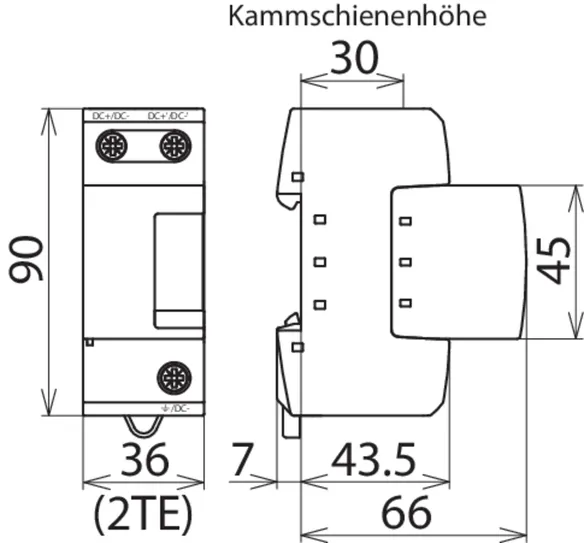 • Speziell für den Einsatz in DC-Stromkreisen geeignete Funkenstreckentechnologie