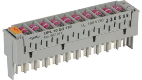 Steckmagazin für 10 DA mit dreipoligen Gasentladungsableitern für nahezu alle Anwendungen. Die Ableiter FSD verfügen über eine fail-safe-Funktion und zusätzlich eine optische Anzeige nach Auslösen des fail-safe. So kann sofort erkannt werden, ob ein Ableiter ausgetauscht werden muss.