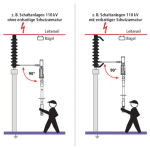 Sollte erdseitig eine Schutzarmatur vorhanden sein, ist der Ausleger am nächstmöglichen Isolatorteller oberhalb der Schutzarmatur anzulegen.