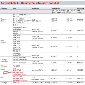 Bei den Typen von Atlas Copco sind mehrere Ausführungen der Aufnahme möglich. Bei Bestellung bitte beachten.
