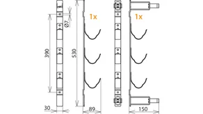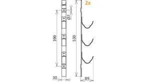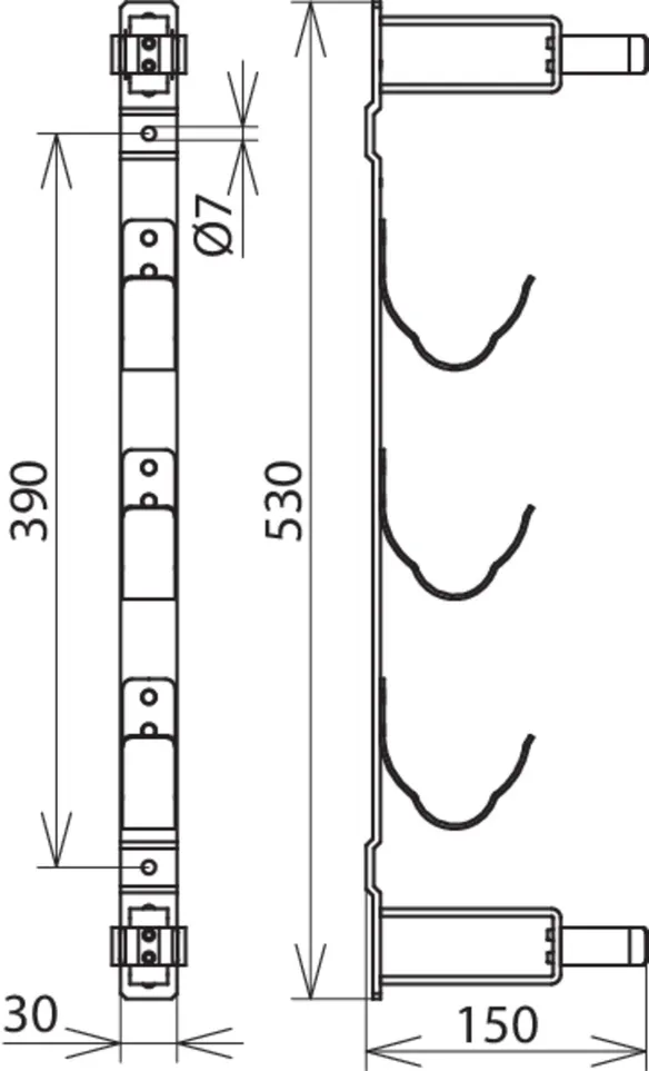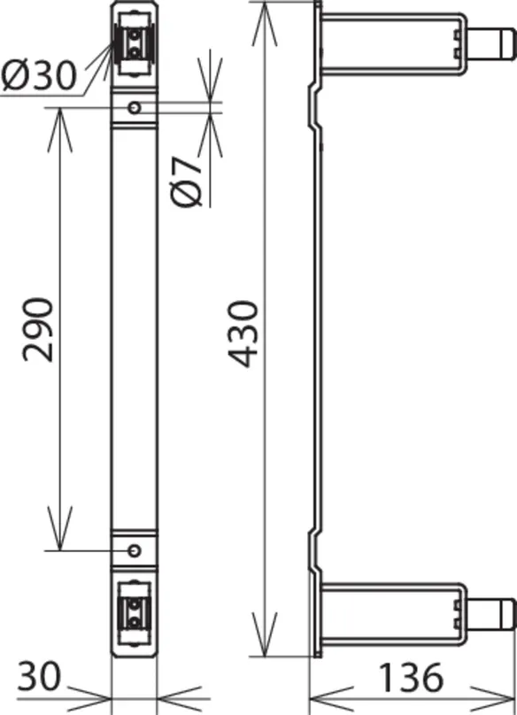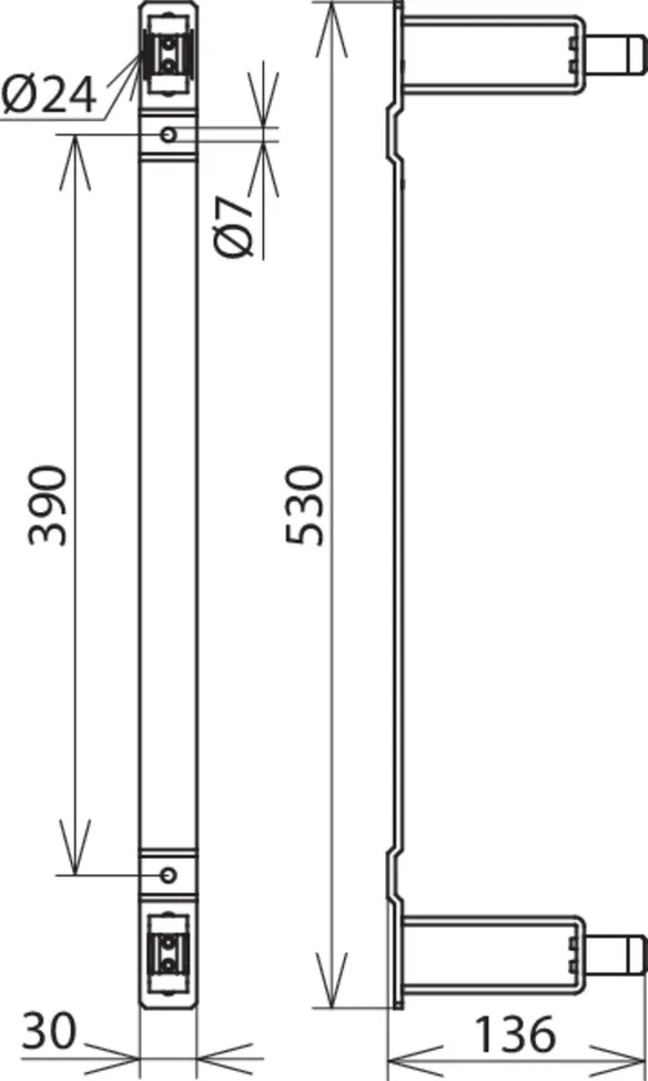 Lochabstand 290/390 mm, Bohrungen Ø7 mm.