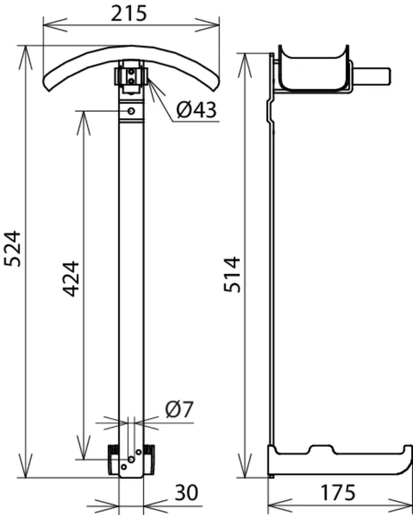 Lochabstand 424 mm, Bohrungen Ø7 mm.