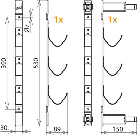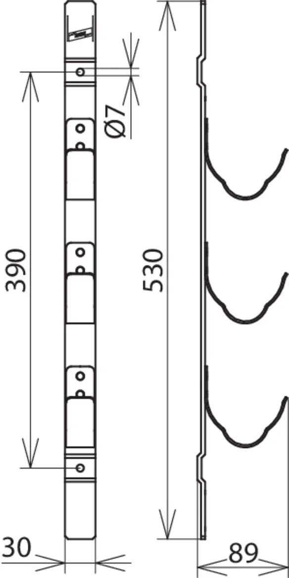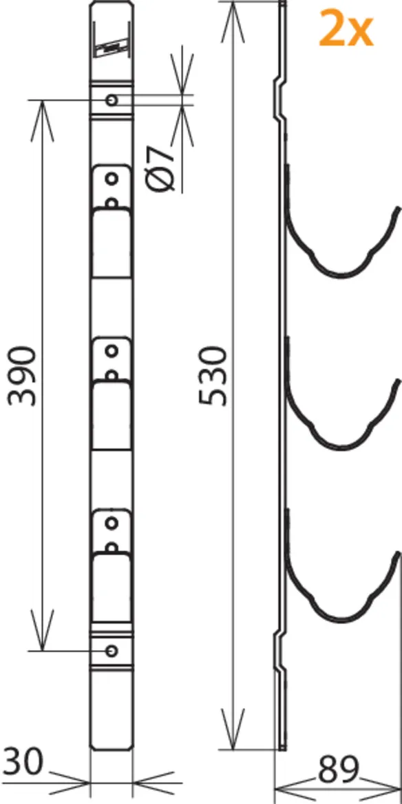 Zur Wandmontage, Bohrungen Ø7 mm.