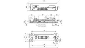 Anschluss (eindrähtig u / mehrdrähtig r / feindrähtig f): 7 x 2,5-25 mm2 (Leitertyp u, r); 7 x 2,5-16 mm2 (Leitertyp f)