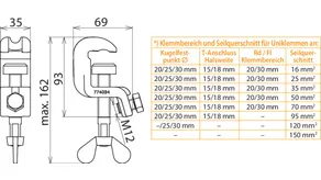 Für Seilquerschnitt Cu 16 ... 50 mm2
