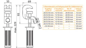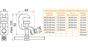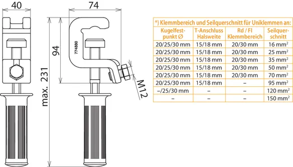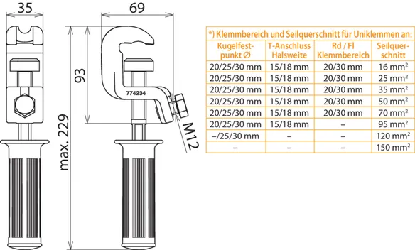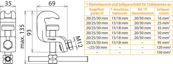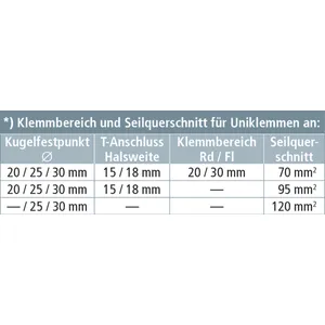 *) siehe Tabelle Klemmbereich und max. Seilquerschnitt für Universalklemmen