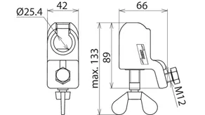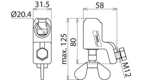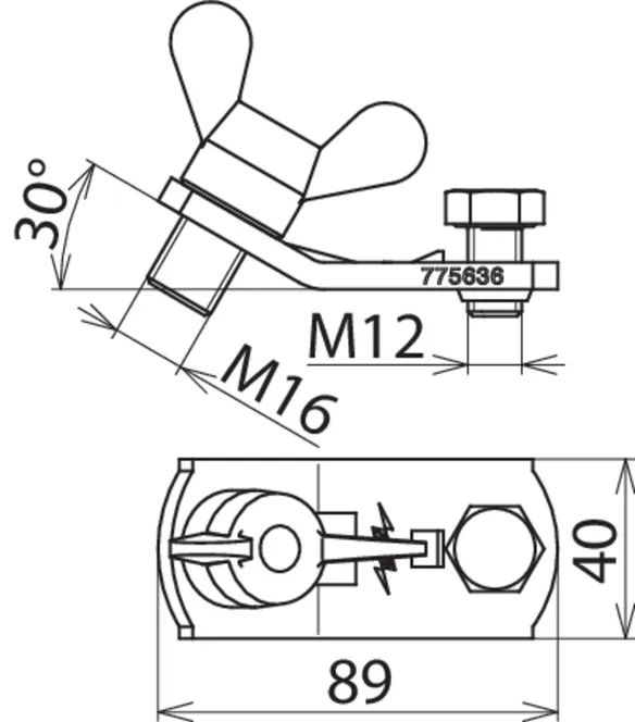 • Zum erdseitigen Anschluss an Kugelfestpunkte, T-Anschlussbolzen, Rund- und Flachleitern, Anschlussstücke und Flachprofile