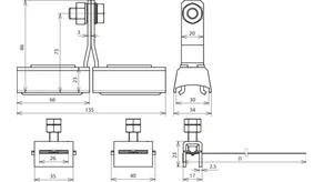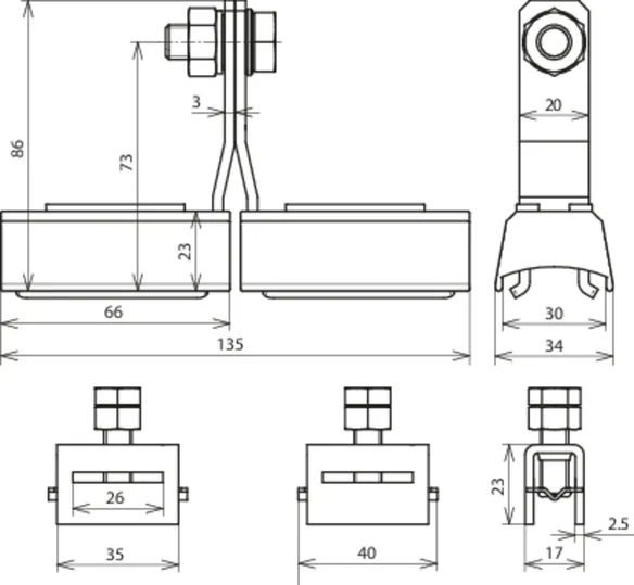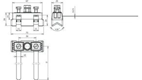 – Rundleiter aus Cu, St/tZn, Al, NIRO mit Ø8/10 mm oder fein- / mehrdrähtige Leiter aus Kupfer mit einem Querschnitt 16-35 mm2 mit Presskabelschuh aus E-Cu (DIN 46235)