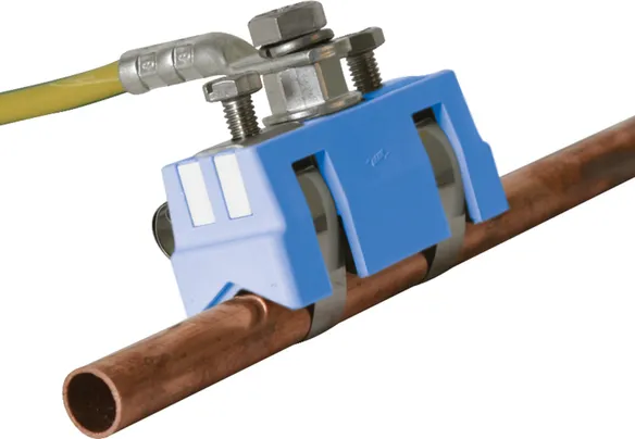 – Flachleiter aus Kupfer mit Mindestabmessungen 20 x 2,5 mm mit einer Bohrung Ø10,5 mm