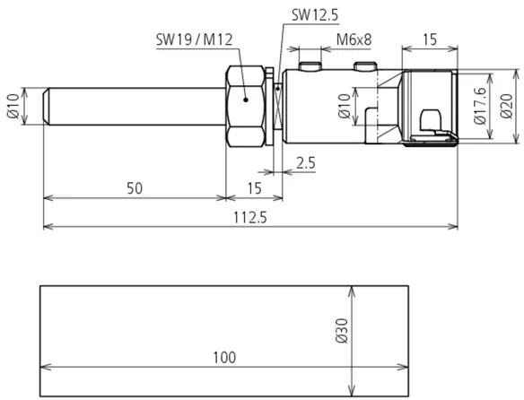 Anschluss: Bolzen Ø10 mm, L 50 mm
