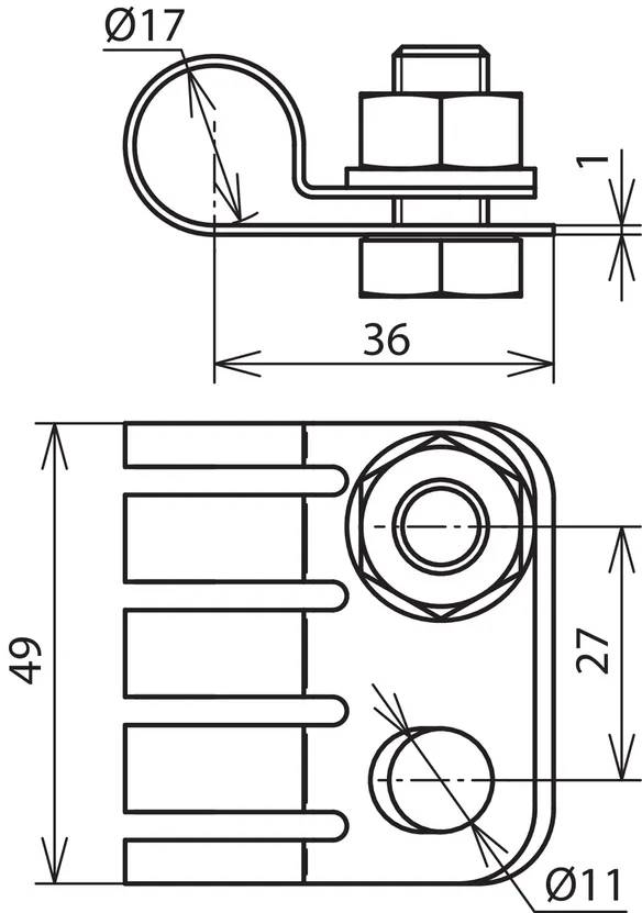 Befestigungsbolzen zur Montage einer Seilüberspannung an Fangstange (Ø22 / Ø16 mm) oder Anschlussplatte (z. B. Art-Nr. 819 289 oder 819 288).