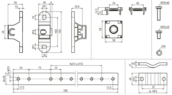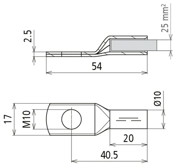 Anschluss Rd/Fl 1x Flachleiter 30/40 mm oder 1x Rundleiter 10 mm