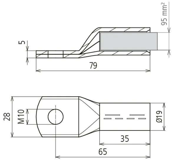Anschluss Kabelschuh 1x flexible / starre Leiter 16-95 mm²
