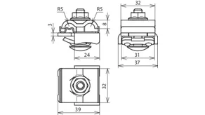 The StSt contact plate (intermediate element) allows different conductor materials (Cu, Al, St/tZn and StSt) to be connected to the normal mounting systems, e.g. to aluminium, without the risk of contact corrosion.