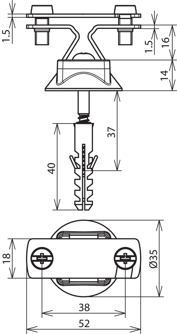 DEHNhold flat strip holder, pre-assembled, with screw, StSt