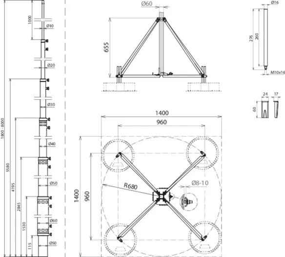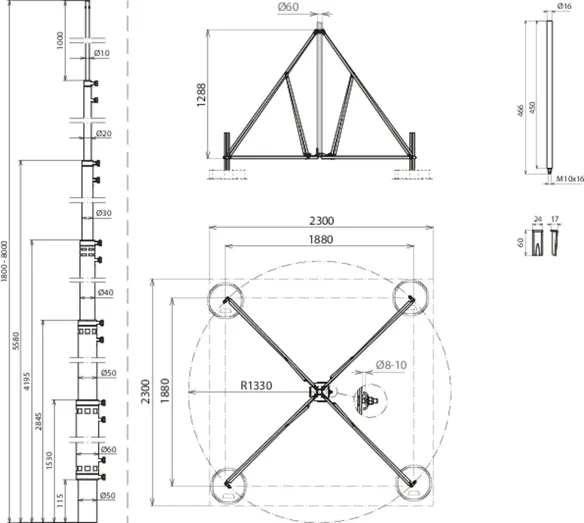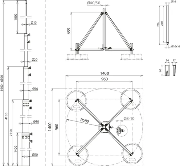 | Termination mast (Ø length) | 50/60/50/40/30/20-7000 mm |