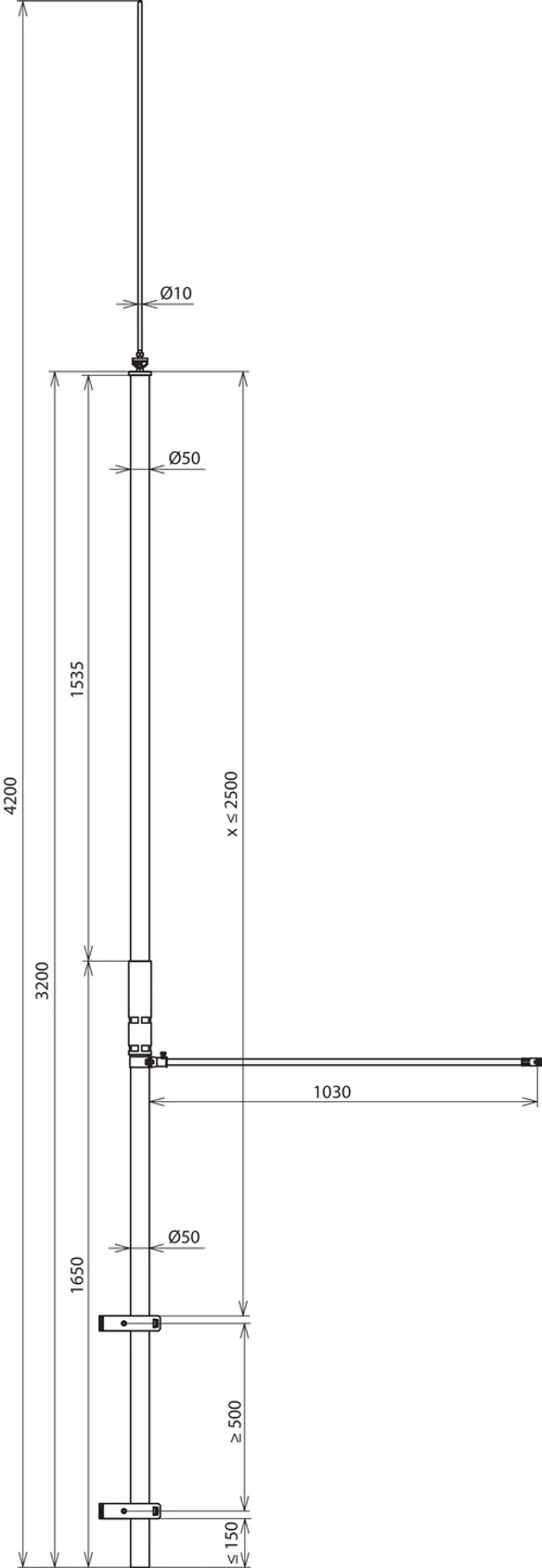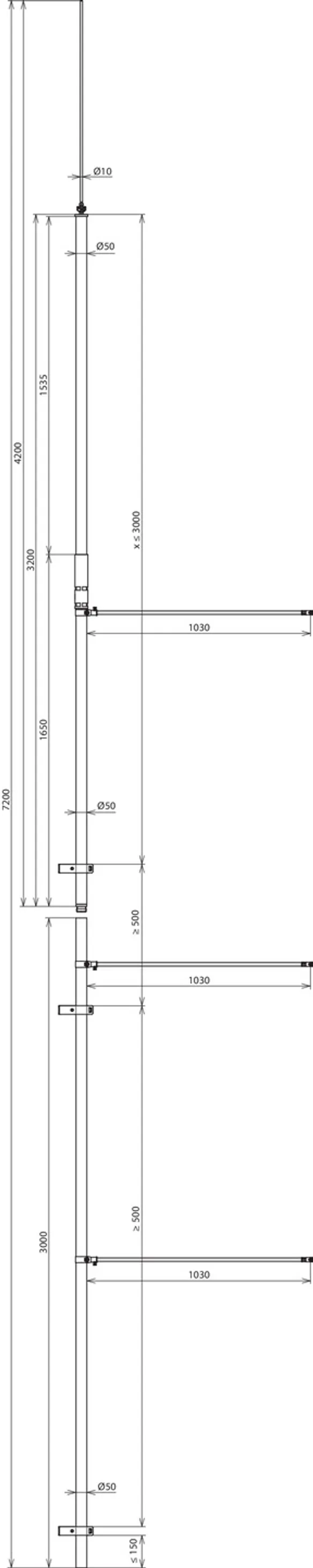 Length of supporting tube: 3200 mm