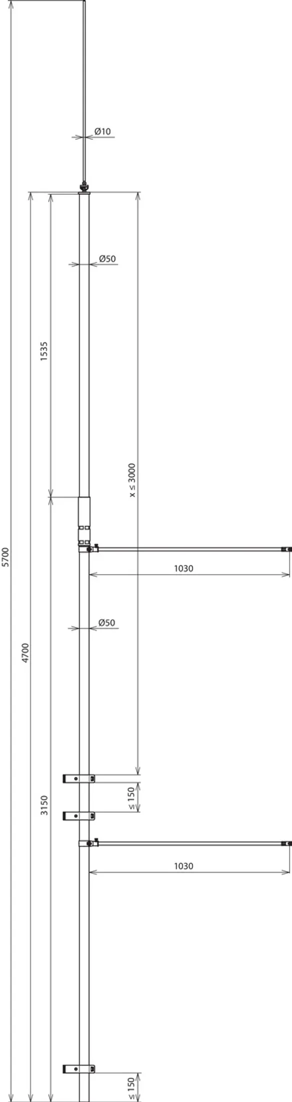 Length of supporting tube: 4700 mm