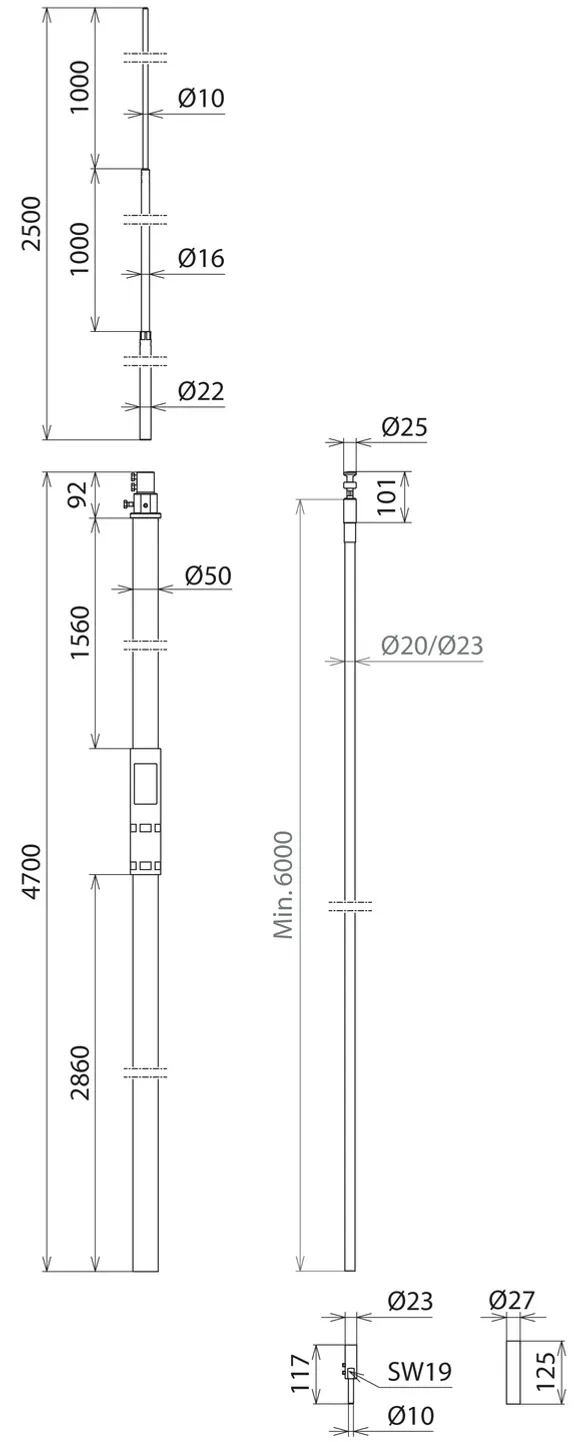 Length of supporting tube 4700 mm