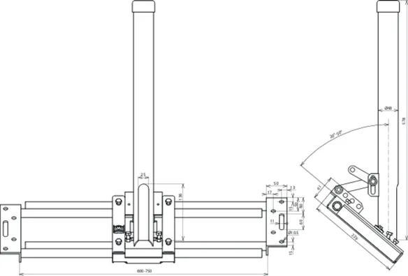 Diameter Ø of cable bushing in supporting tube: 25 mm