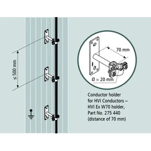 For installing the HVI Conductor with conductor holders HVI Ex W70 holder (Part No. 275 440) on a non-conductive structure, e.g. stone, wood.