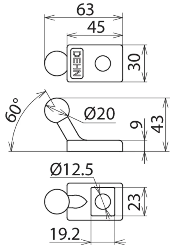 | Fixed ball point Ø | 20 mm |