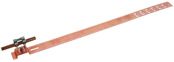 With prepunched points for bending it and hooking it into roof tiles or battens, with additional clamping part, e.g. for slated roofs, with conductor holder DEHNgrip, loose conductor routing.