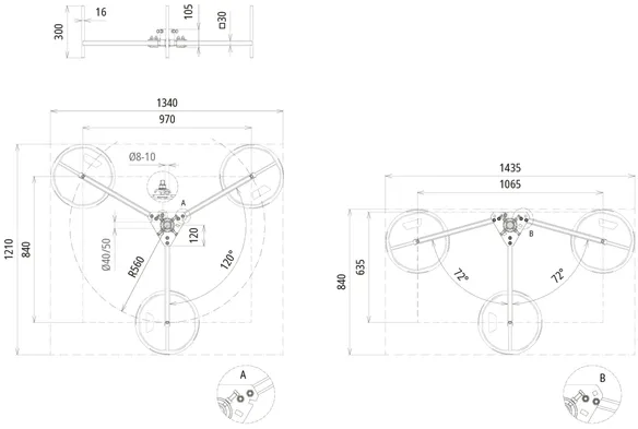 Stands for air-termination rods D40 and GRP/Al supporting tubes