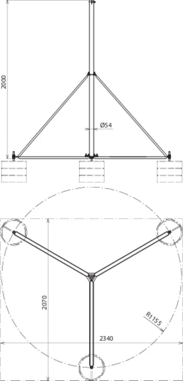 Tripods are dimensioned according to Eurocode 1 (DIN EN 1991-1-4 + DIN EN 1991-1-4/NA).