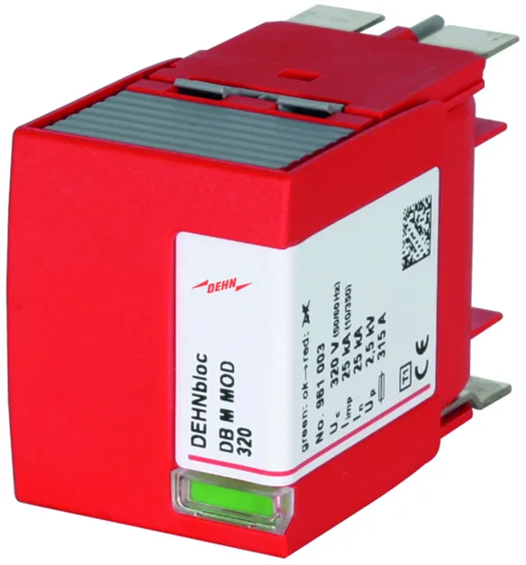 In the case of spark-gap-based type 1 arresters, the entire current flows through the type 1 arrester during the discharge process. Like a wave breaker, the incoming energy is greatly broken down, which significantly relieves the downstream SPDs. All type 1 arresters in the Red/Line product range feature the WBF wave breaker function.