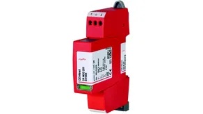 Two-pole surge arrester consisting of a base part and a plug-in protection module; with floating remote signalling contact. Can be used for systems with a load current up to 32 A.