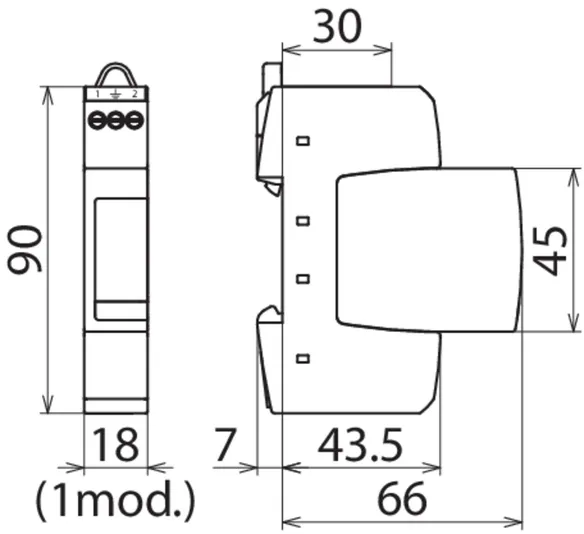 • Two-pole surge arrester consisting of a base part and a plug-in protection module