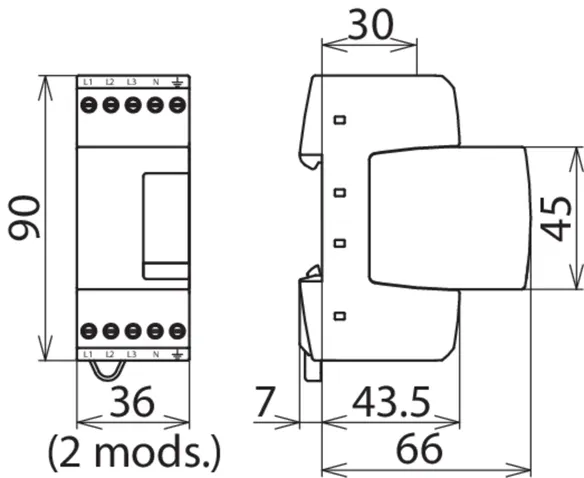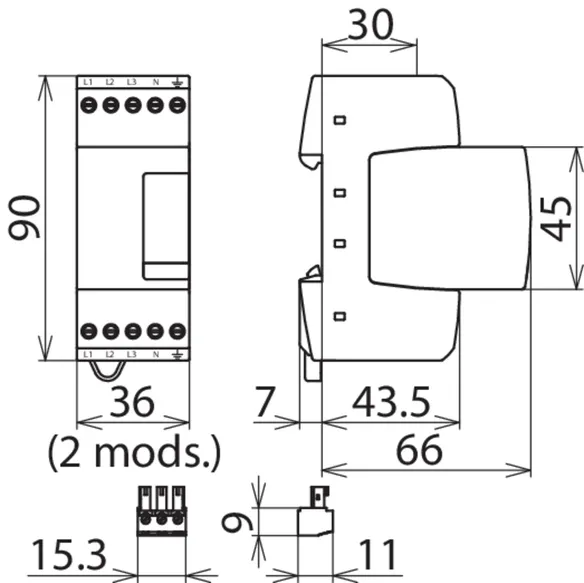 Width: 2 modules, fault indication