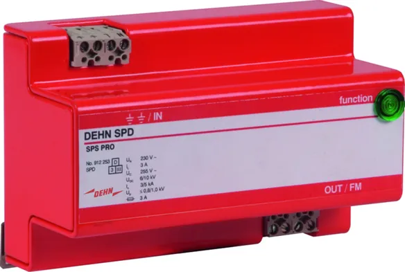 Surge arrester with interference suppressor filter for single-phase 230 V TT and TN systems; with floating remote signalling contact.